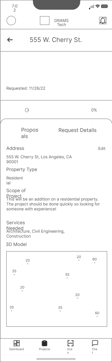 The client requested for us to create a mobile version of their product but only display the essential information needed to create and view a project. Below are the user stories we came up with and was approved by our client.