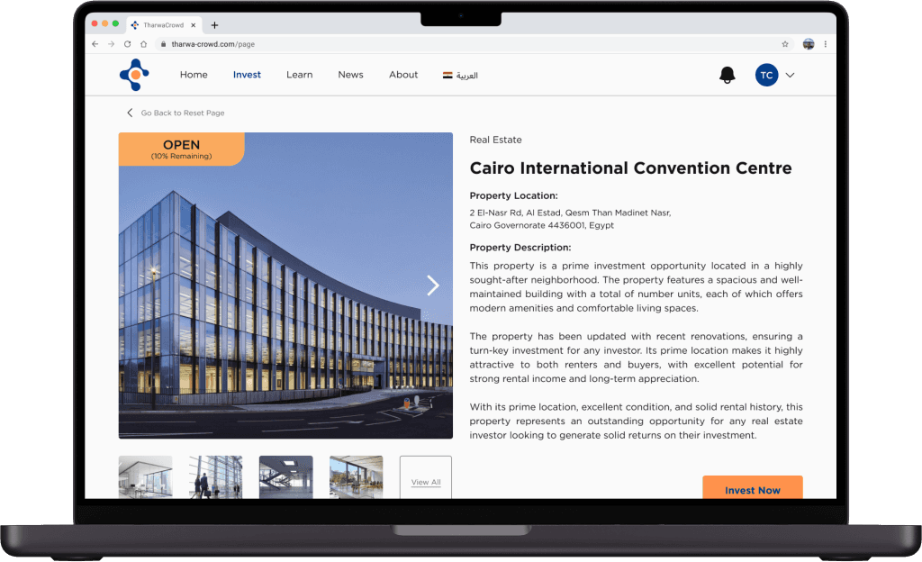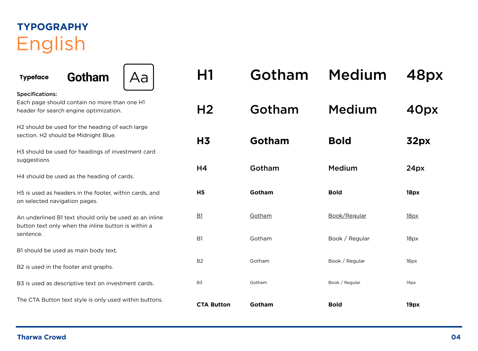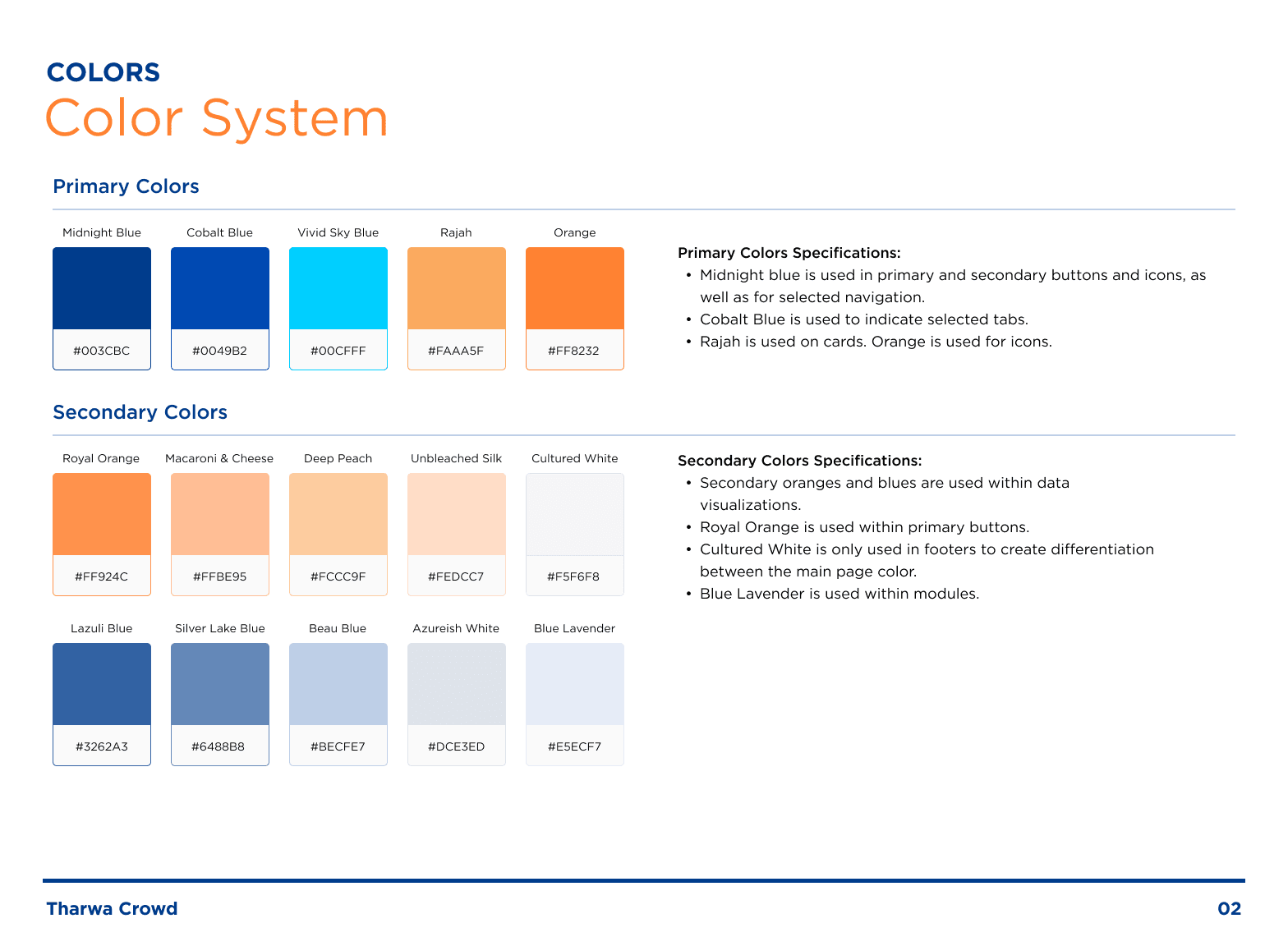 Our team established a style guide that adhered to Tharwa Crowd's branding guidelines. We utilized the company's colors, typography, and layout grid to ensure consistency across all screens while ensuring that all colors met accessibility standards.